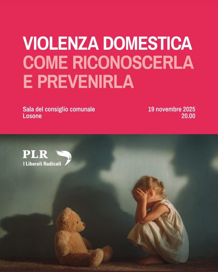 Il PLR Losone vi invita all’evento “Violenza domestica: come riconoscerla e prevenirla” che si terrà il 19 novembre 2025 presso la nuova sala del Consiglio comunale di Losone.